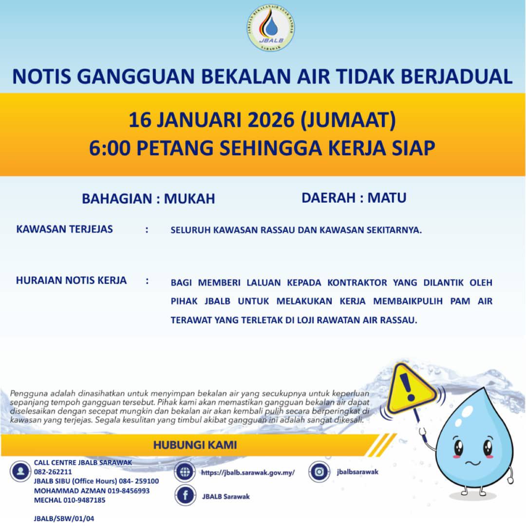 Unscheduled Water Interruption Notice at Mukah (Matu) (16.01.2026)