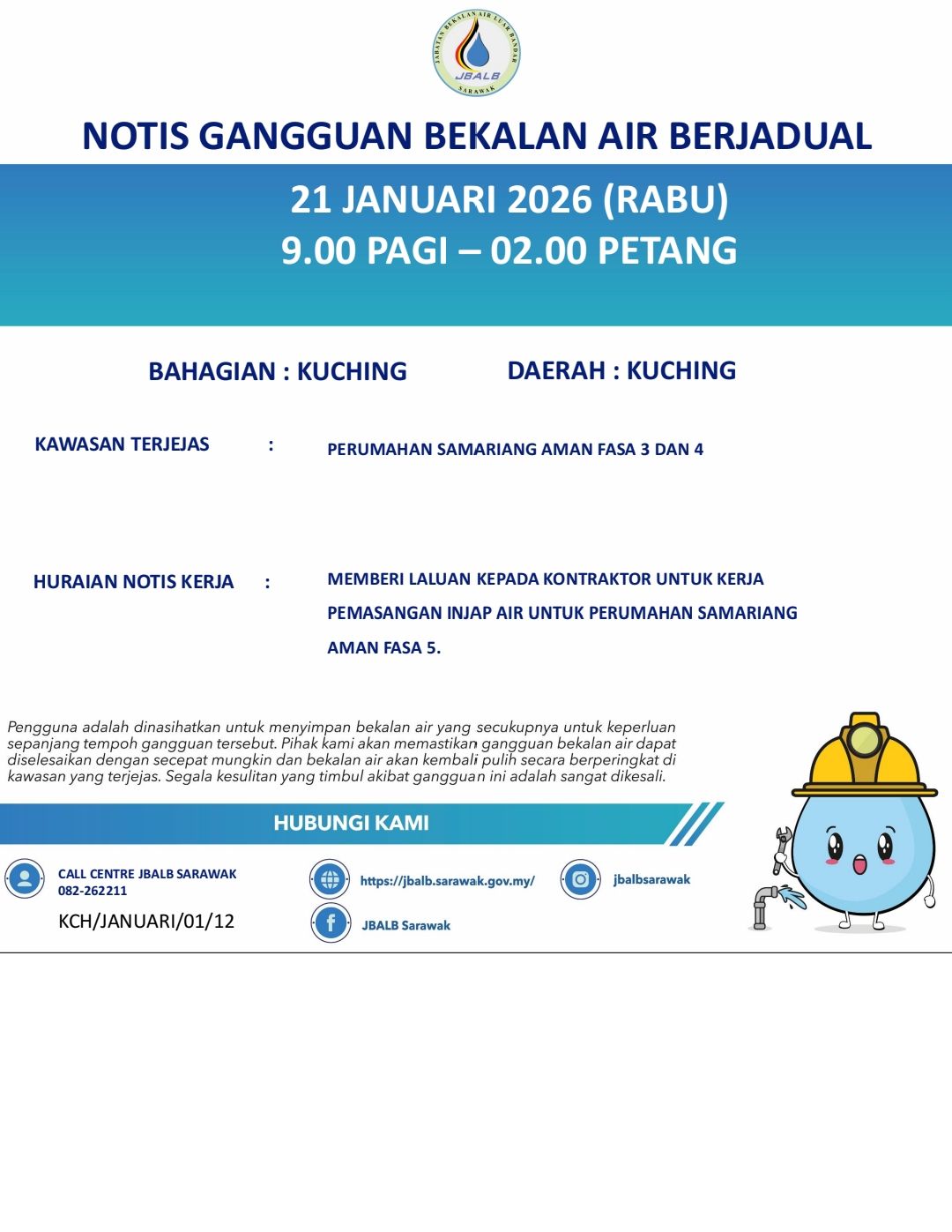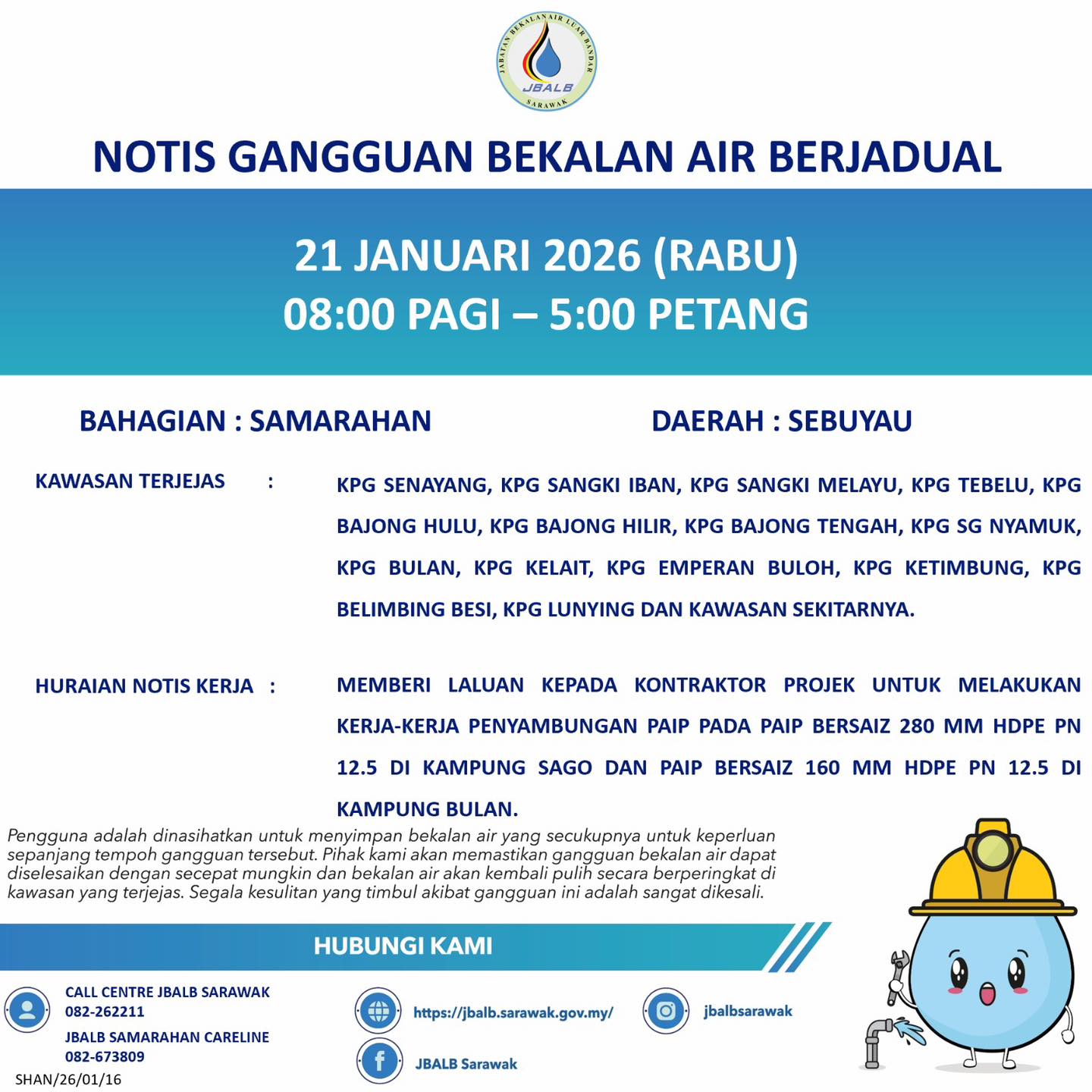 Scheduled Water Interruption Notice at Samarahan (Sebuyau) (21.01.2026)