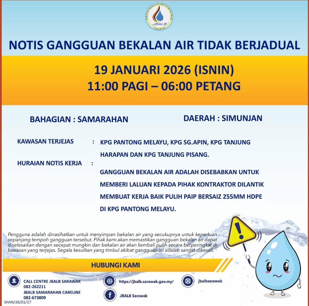 Unscheduled Water Interruption Notice at Samarahan (Simunjan) (19.01.2026)