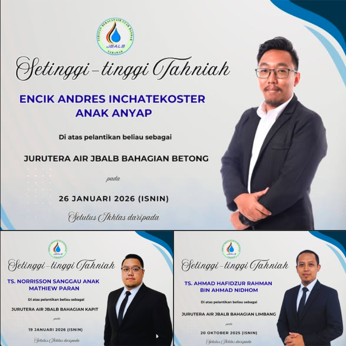 JBALB BAHAGIAN BETONG, KAPIT DAN LIMBANG TERIMA PELANTIKAN JURUTERA AIR BAHAGIAN YANG BAHARU
