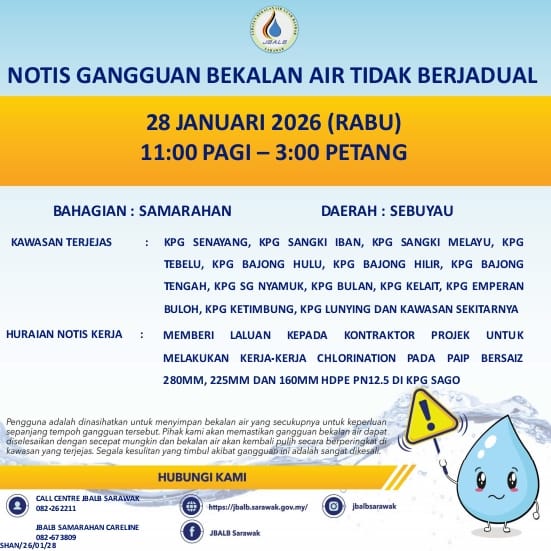 Unscheduled Water Interruption Notice at Samarahan (Sebuyau) (28.01.2026)