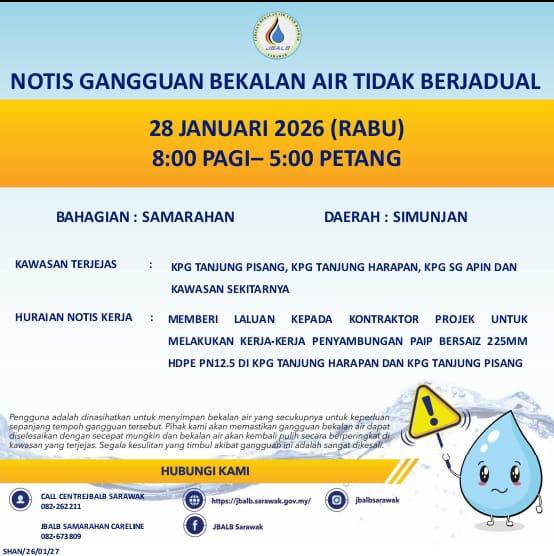 Unscheduled Water Interruption Notice at Samarahan (Simunjan) (28.01.2026)