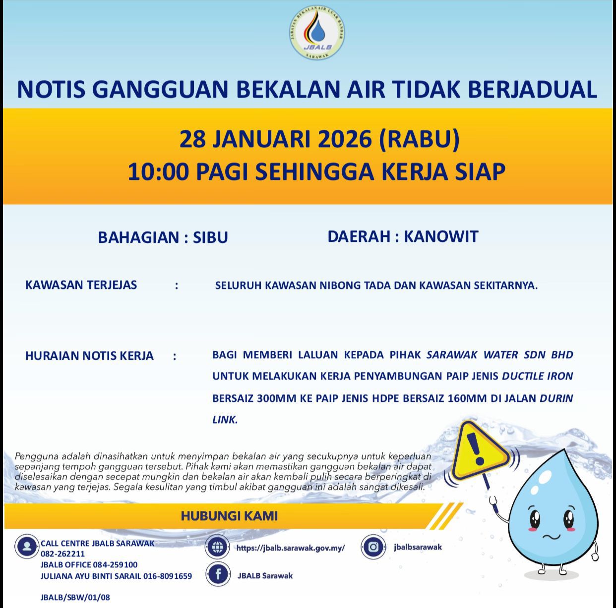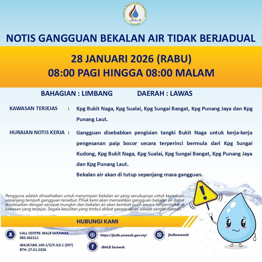 Unscheduled Water Interruption Notice at Limbang (Lawas) (28.01.2026)