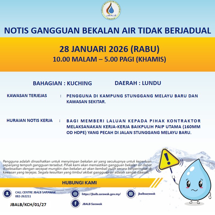 Unscheduled Water Interruption Notice at Kuching (Lundu) (28.01.2026)