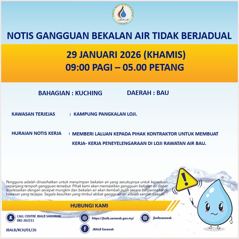Unscheduled Water Interruption Notice at Kuching (Bau) (29.01.2026)