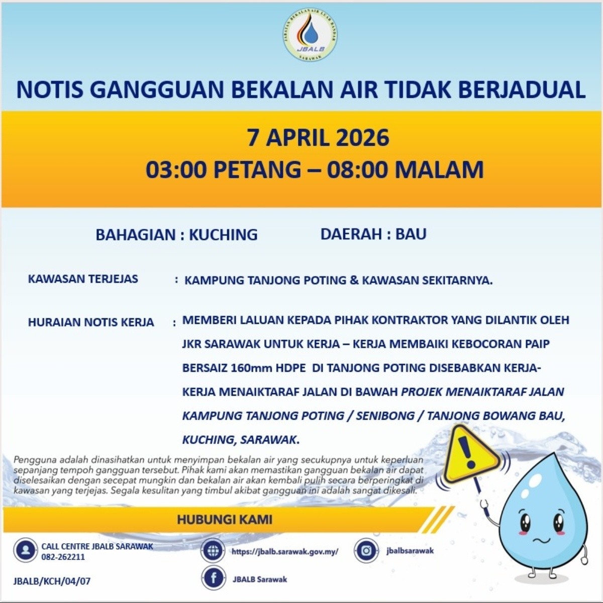 Unscheduled Water Interruption Notice at Kuching (Bau) (07.04.2026)