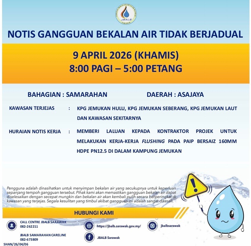 Unscheduled Water Interruption Notice at Samarahan (Asajaya) (09.04.2026)