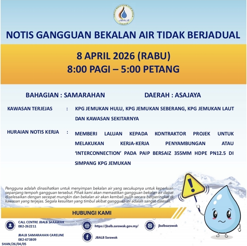 Unscheduled Water Interruption Notice at Samarahan (Asajaya) (08.04.2026)