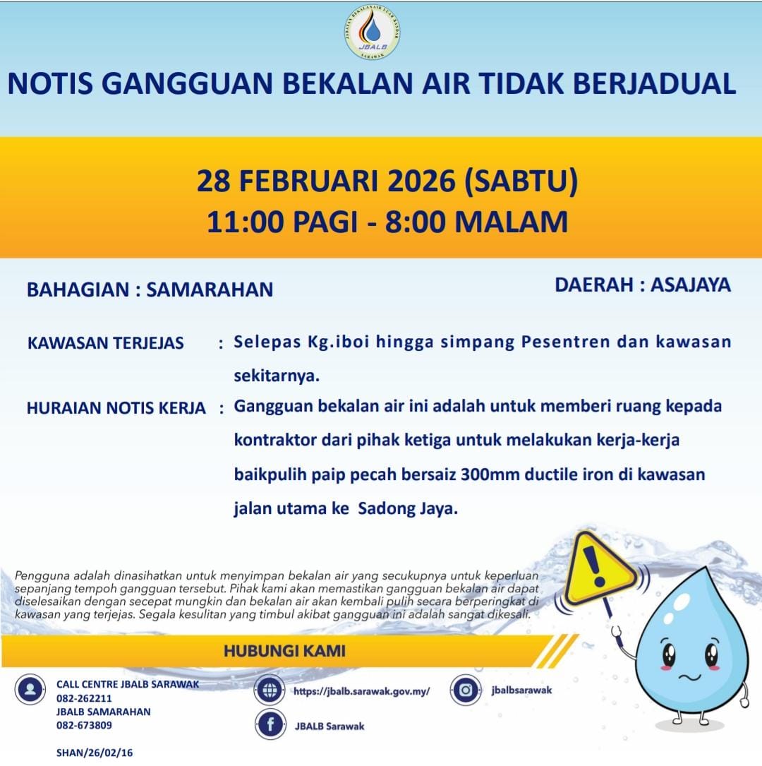 Unscheduled Water Interruption Notice at Samarahan (Asajaya) (28.02.2026)