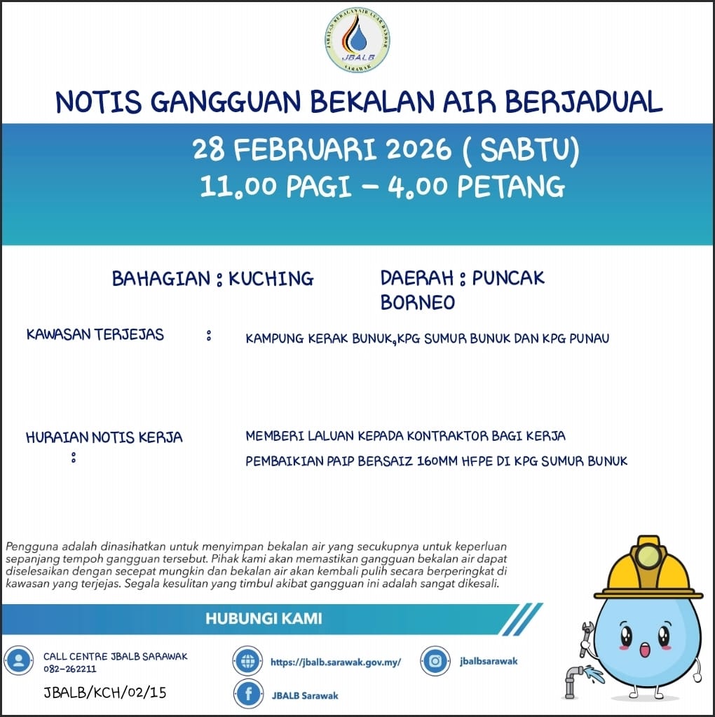 Scheduled Water Interruption Notice at Kuching (Puncak Borneo) (28.02.2026)