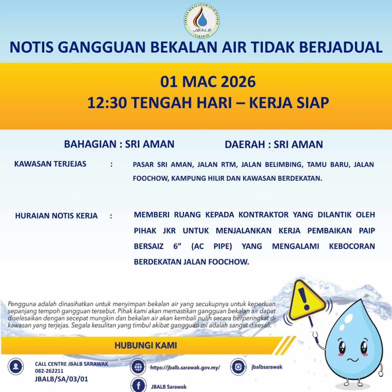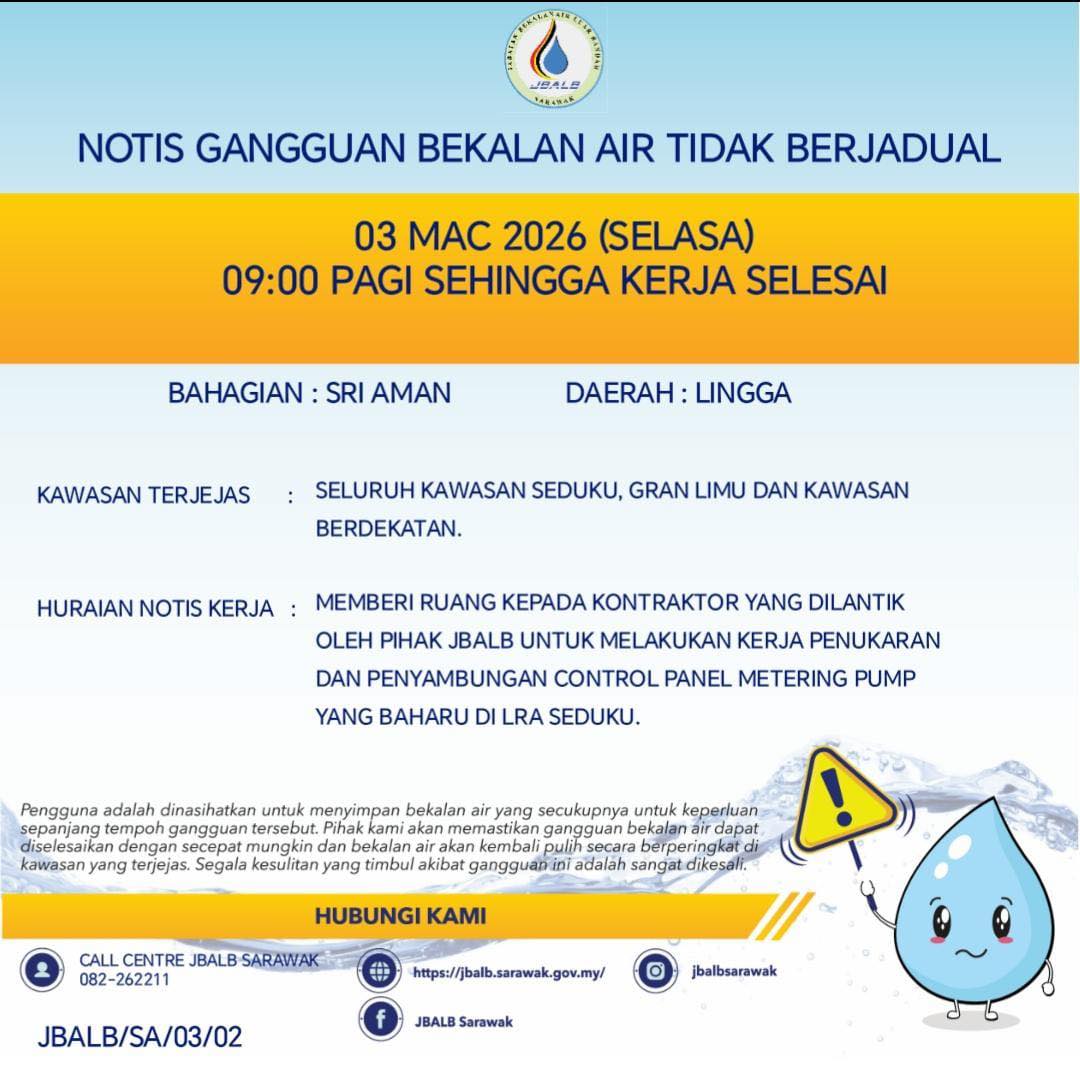 Unscheduled Water Interruption Notice at Sri Aman (Lingga) (03.03.2026)