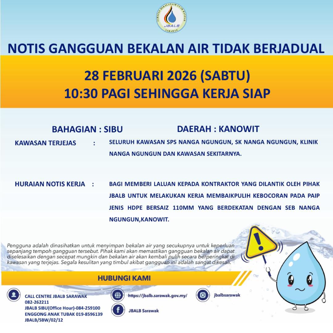 Unscheduled Water Interruption Notice at Sibu (Kanowit) (28.02.2026)