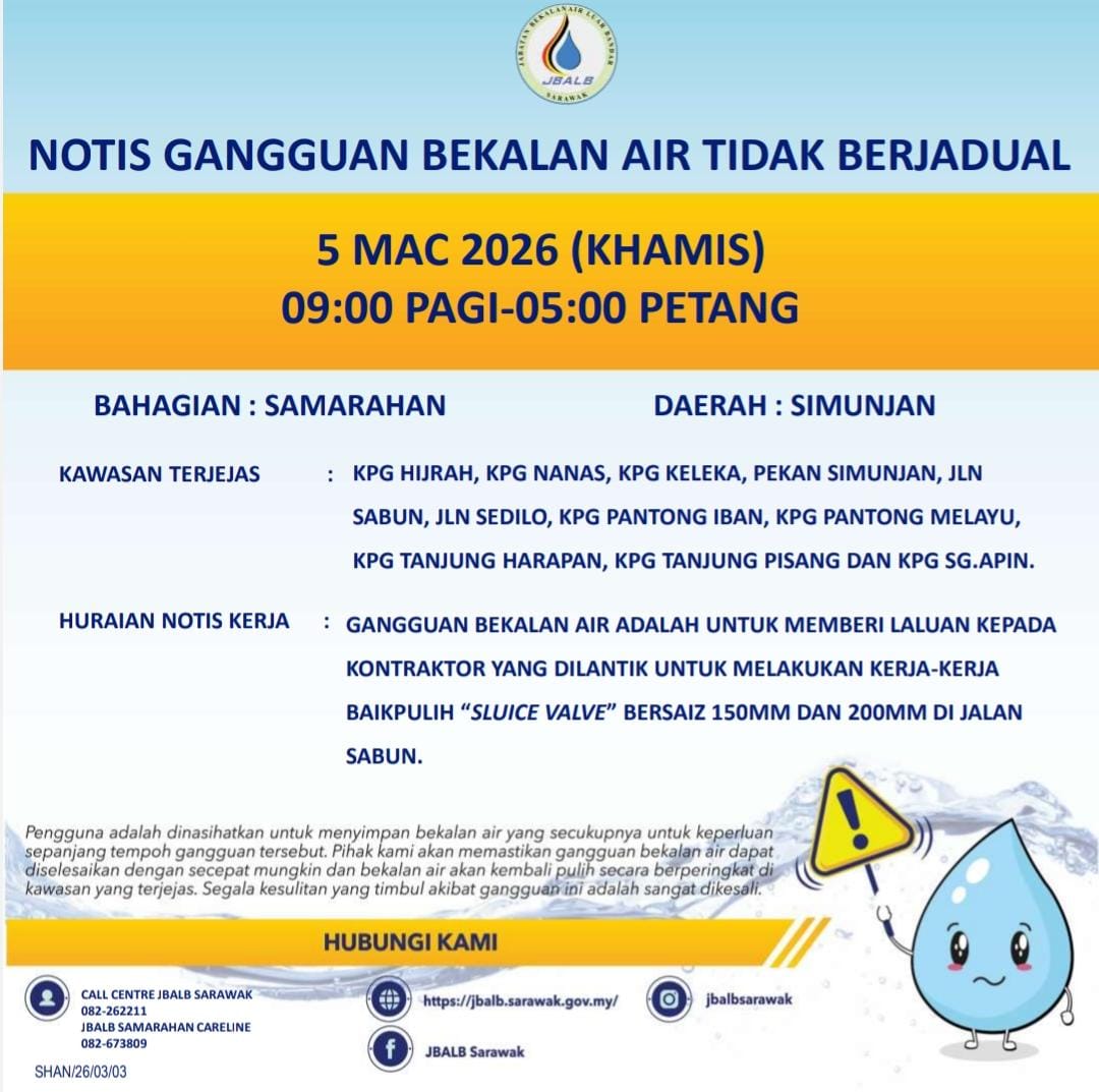 Unscheduled Water Interruption Notice at Samarahan (Simunjan) (05.03.2026)