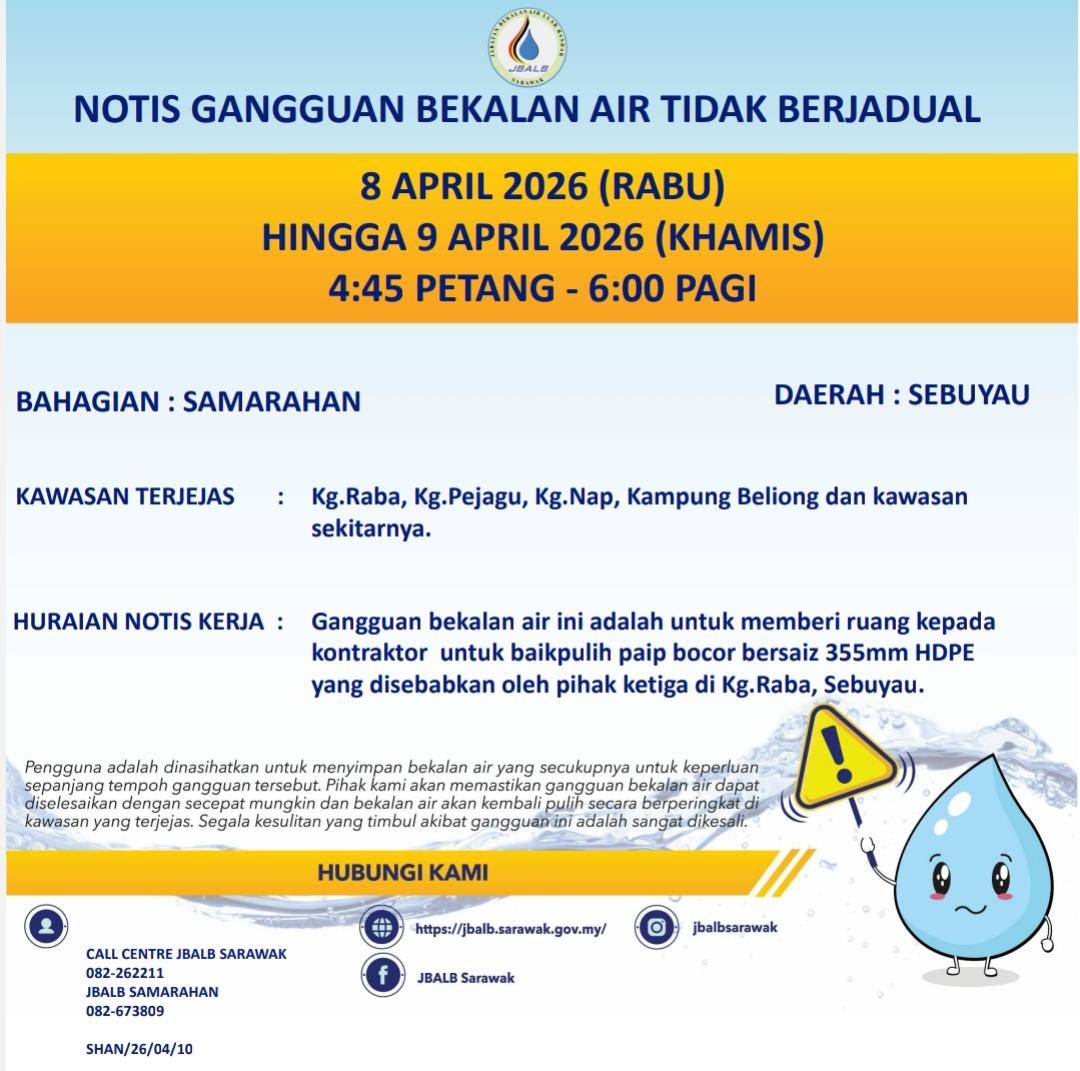 Unscheduled Water Interruption Notice at Samarahan (Sebuyau) (08.04.2026)