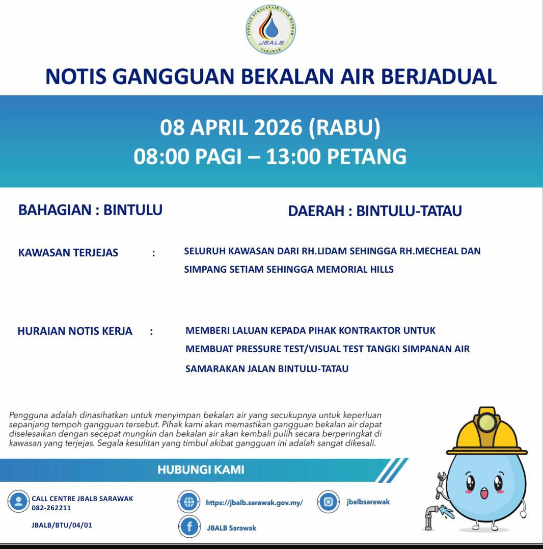 Scheduled Water Interruption Notice at Bintulu (Tatau) (08.04.2026)