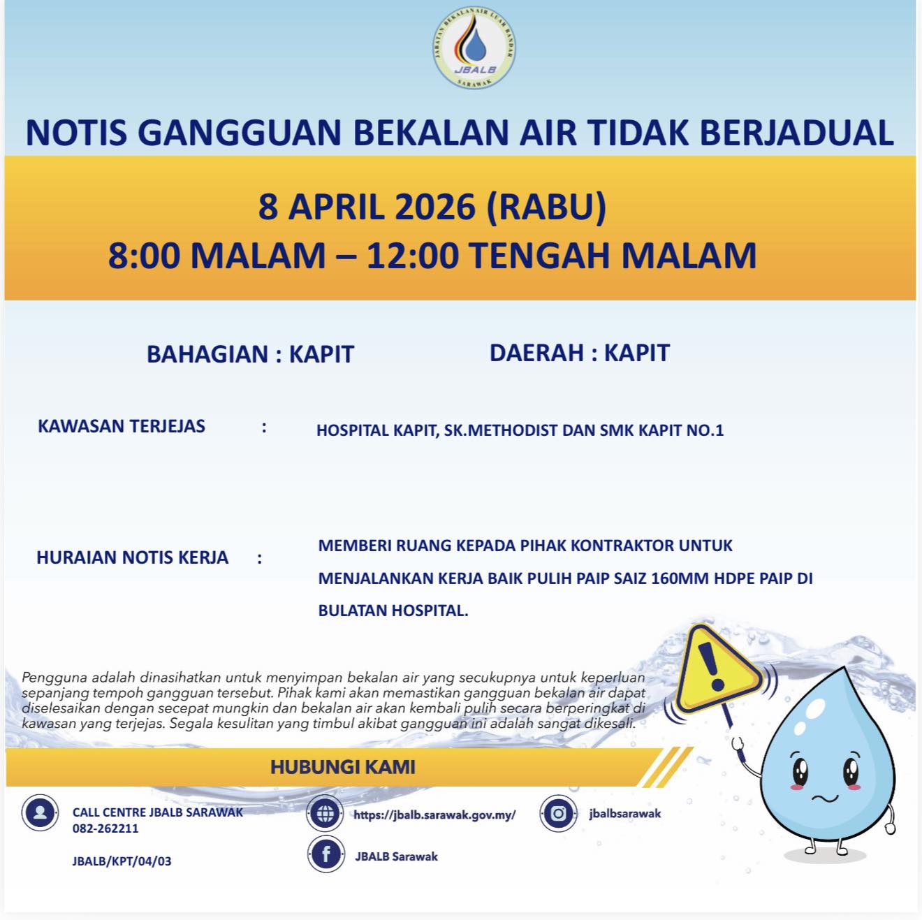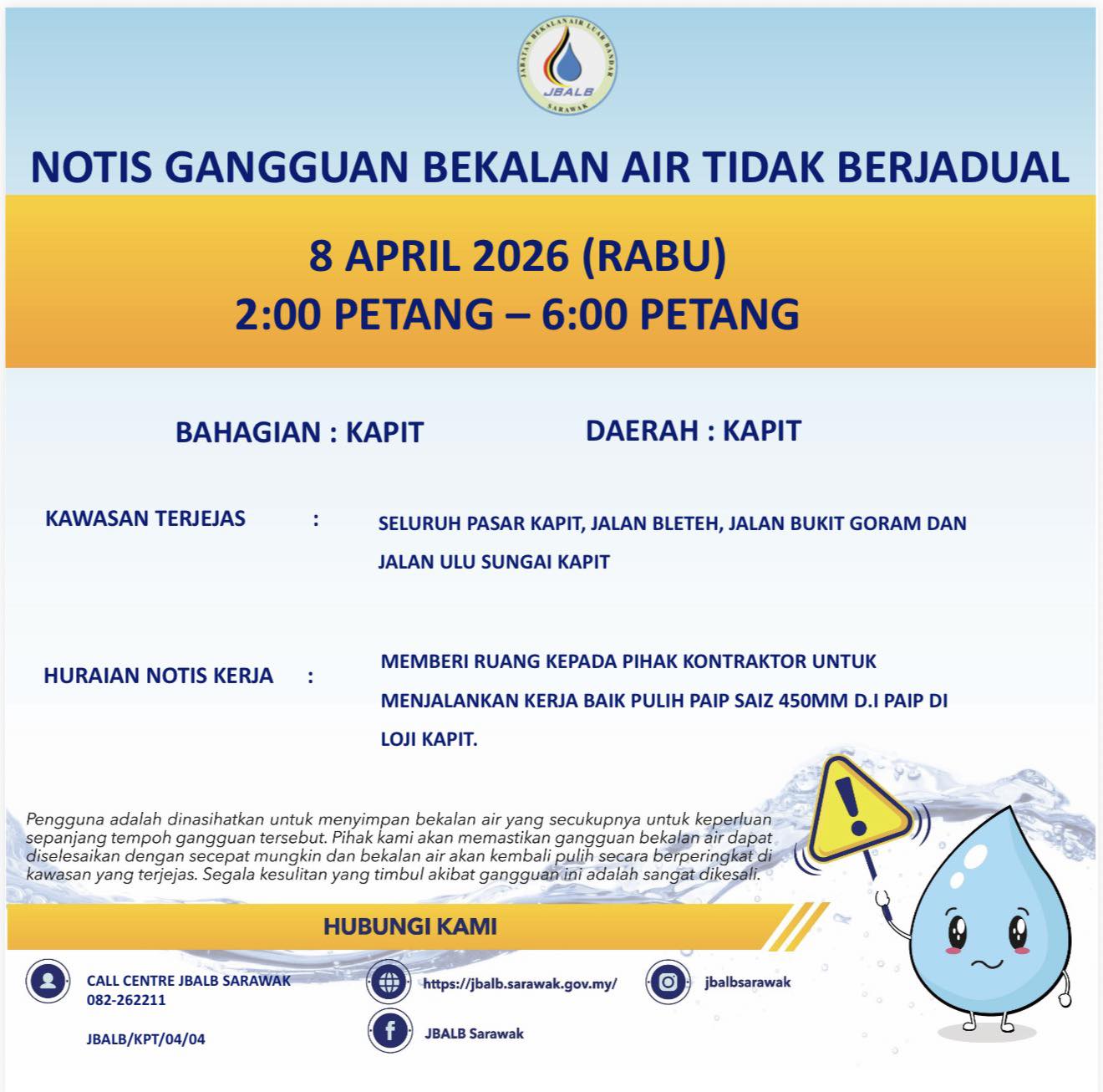 Unscheduled Water Interruption Notice at Kapit (08.04.2026)