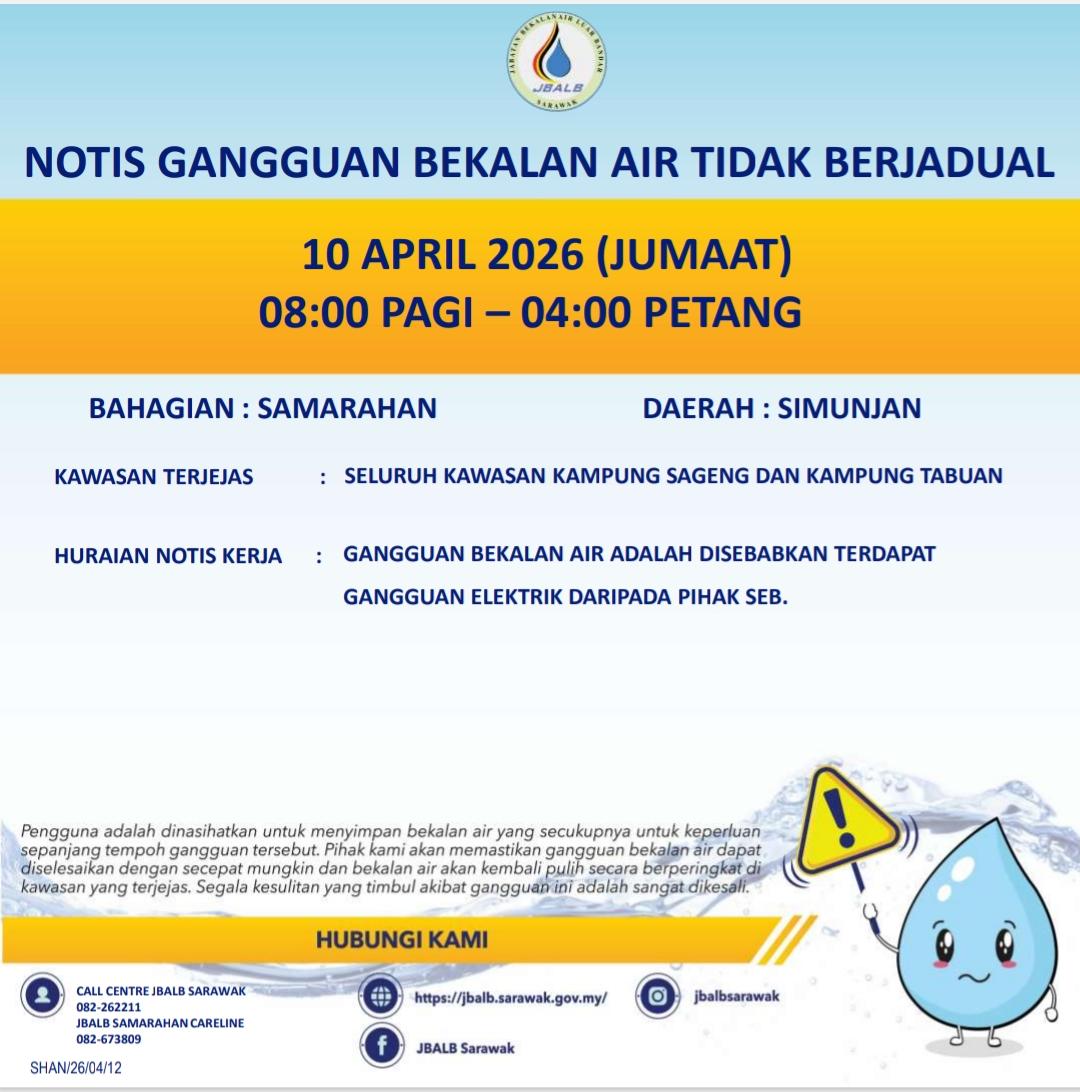Unscheduled Water Interruption Notice at Sri Aman (Lingga) (10.04.2026)