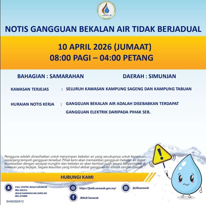 Unscheduled Water Interruption Notice at Samarahan (Simunjan) (10.04.2026)