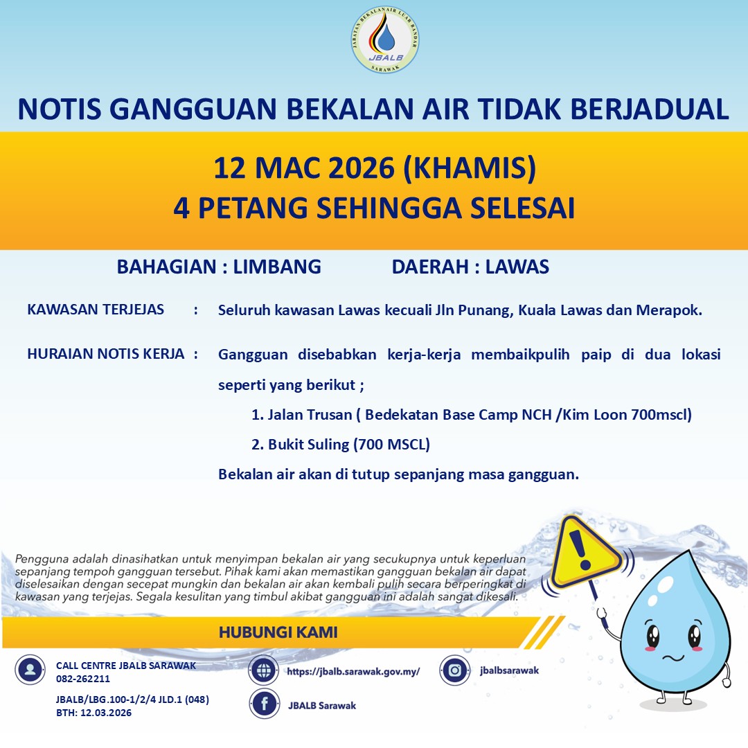 Unscheduled Water Interruption Notice at Limbang (Lawas) (12.03.2026)