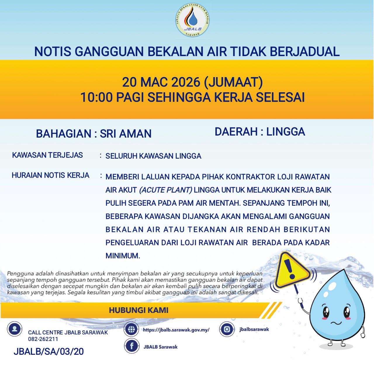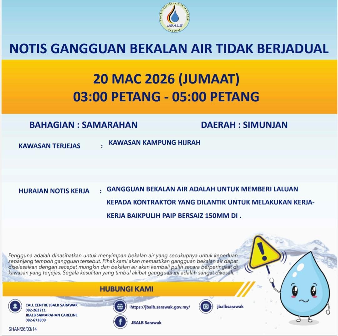 Unscheduled Water Interruption Notice at Sri Aman (Lingga) (20.03.2026)