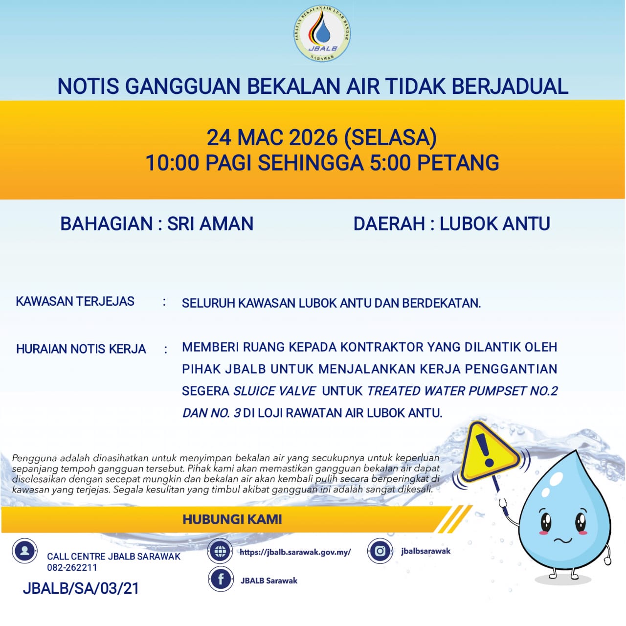 Unscheduled Water Interruption Notice at Sri Aman (Lubok Antu) (24.03.2026)