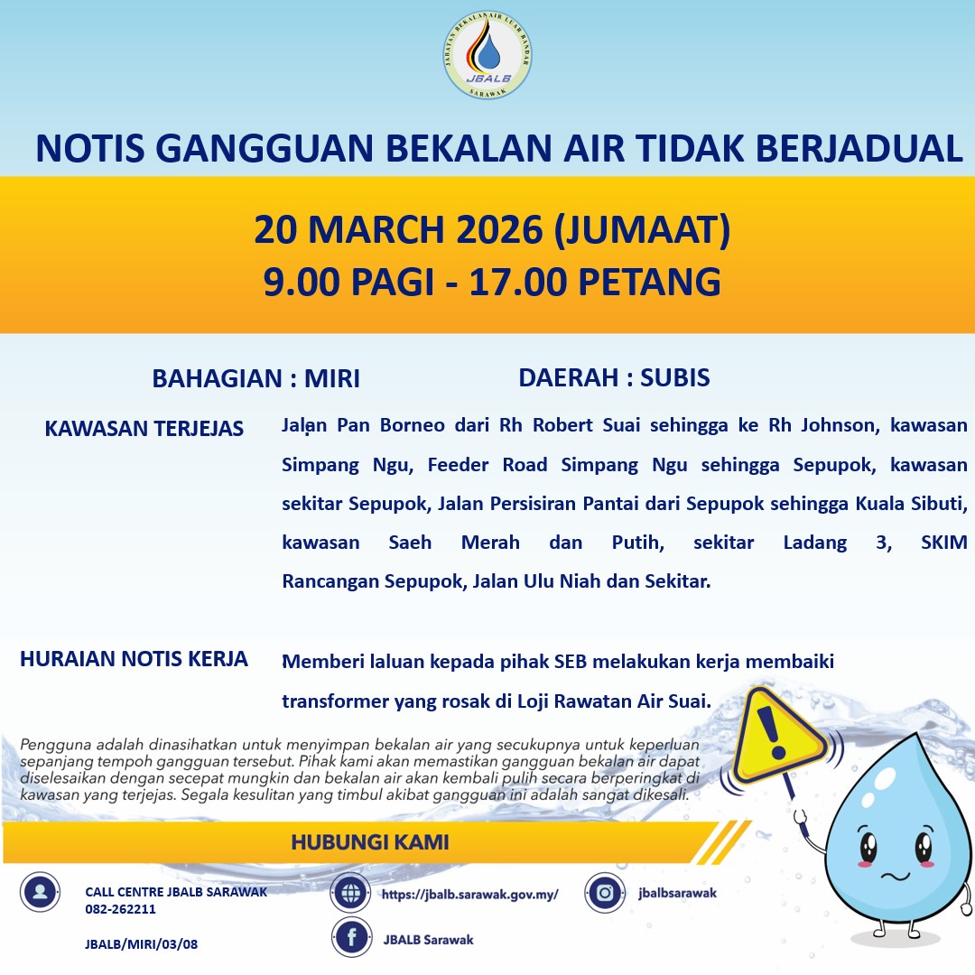 Unscheduled Water Interruption Notice at Miri (Subis) (20.03.2026)