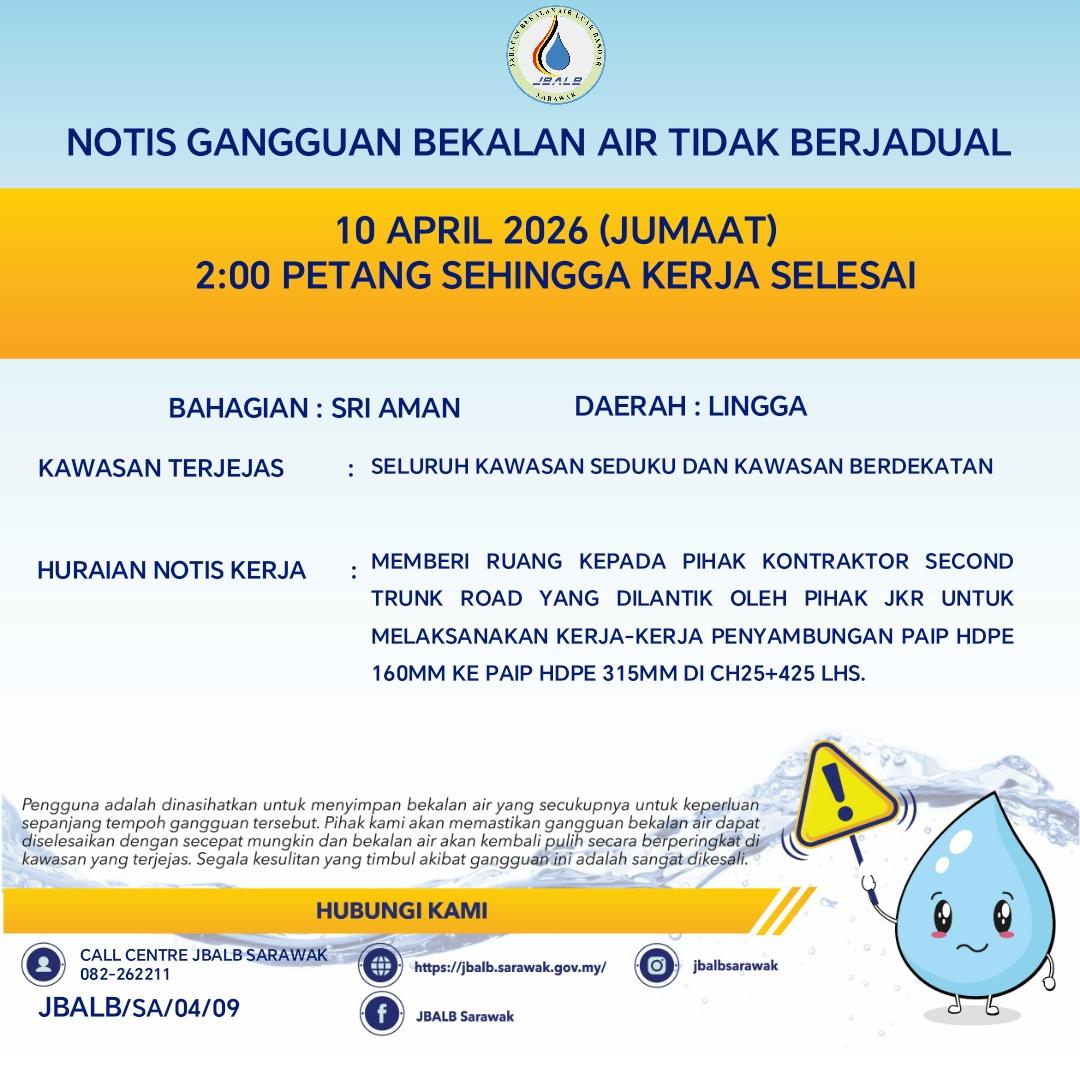 Unscheduled Water Interruption Notice at Sri Aman (Lingga) (10.04.2026)