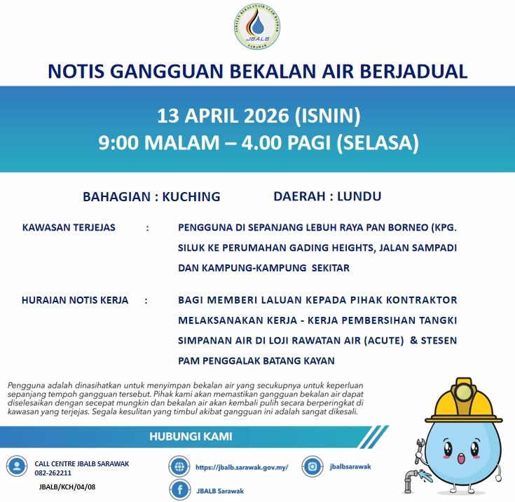Scheduled Water Interruption Notice at Kuching (Lundu) (13.04.2026)