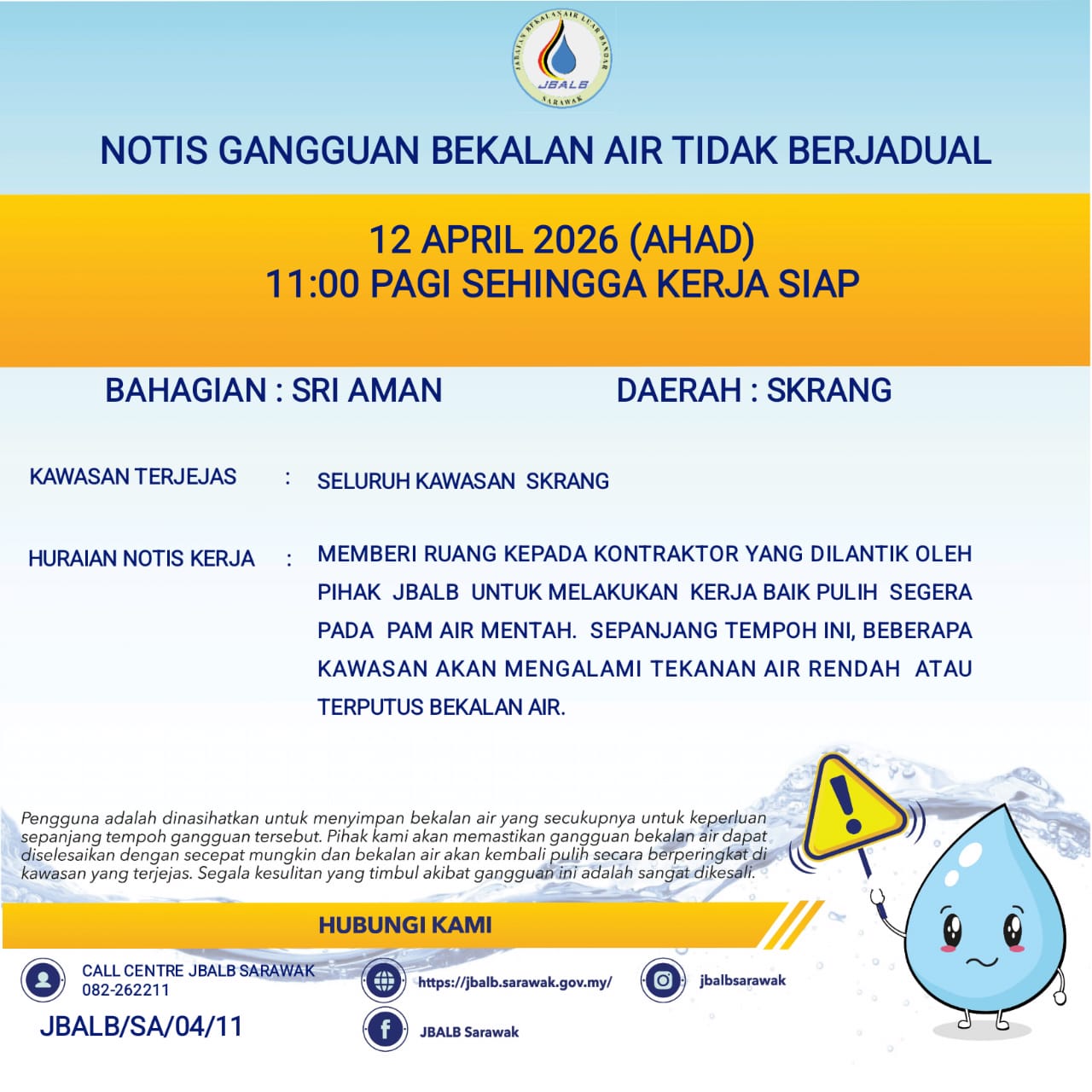 Unscheduled Water Interruption Notice at Sri Aman (Skrang) (12.04.2026)