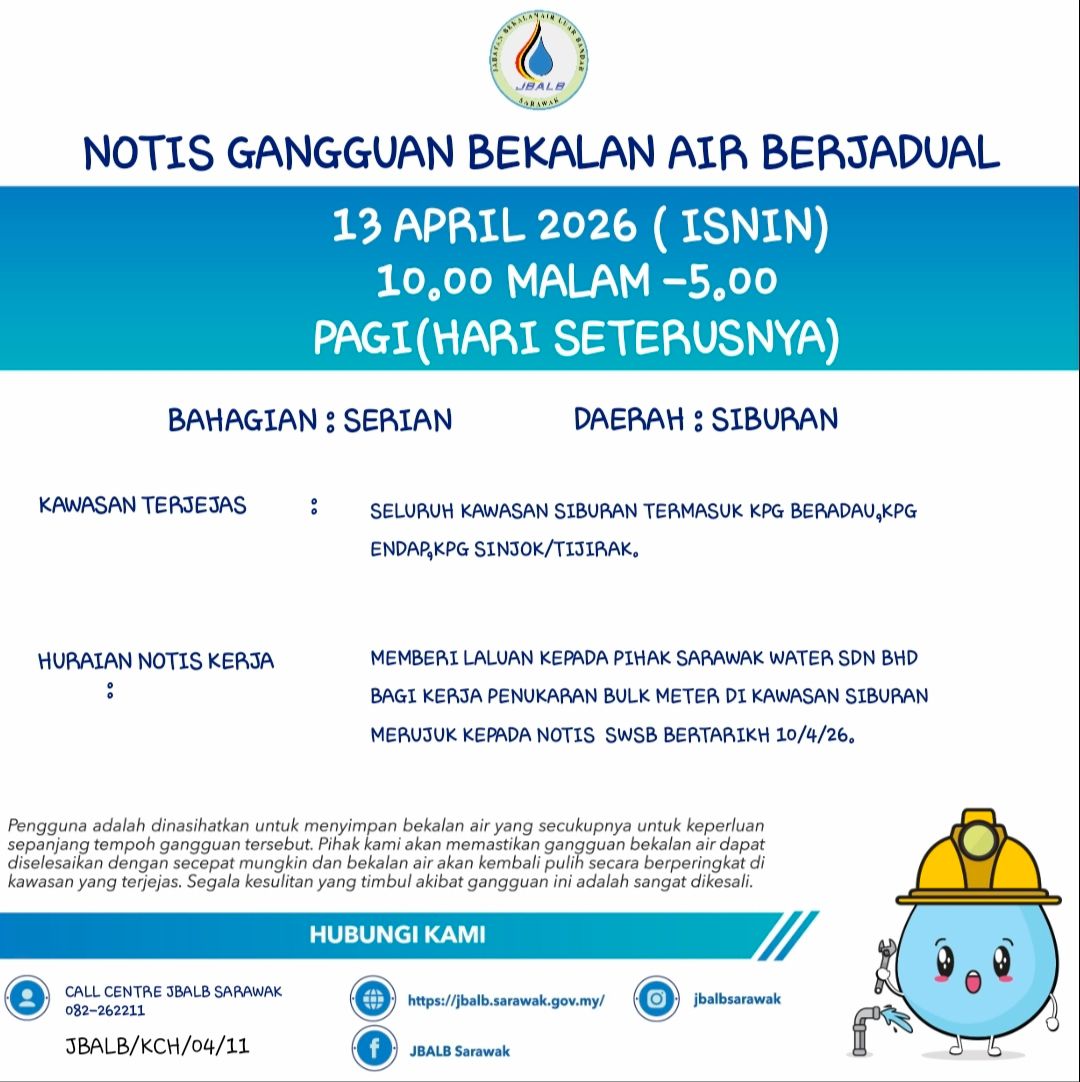 Scheduled Water Interruption Notice at Serian (Siburan) (13.04.2026)