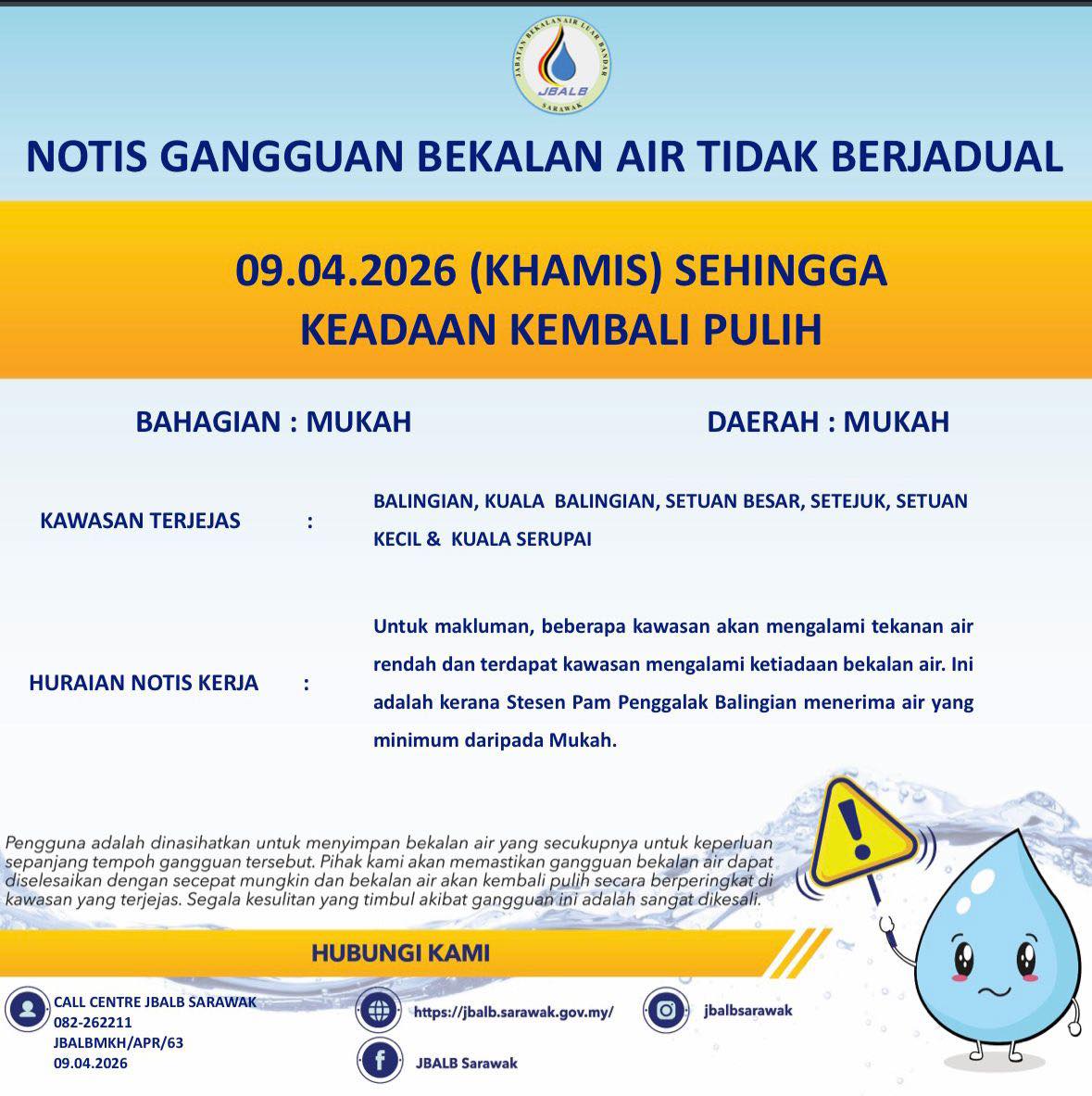 Unscheduled Water Interruption Notice at Mukah (09.04.2026)