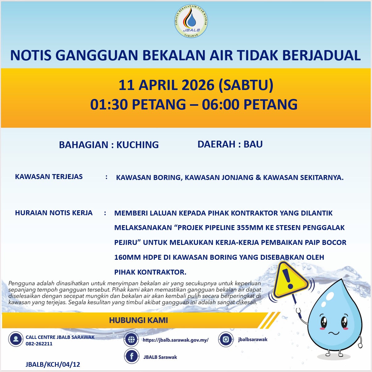Unscheduled Water Interruption Notice at Kuching (Bau) (11.04.2026)