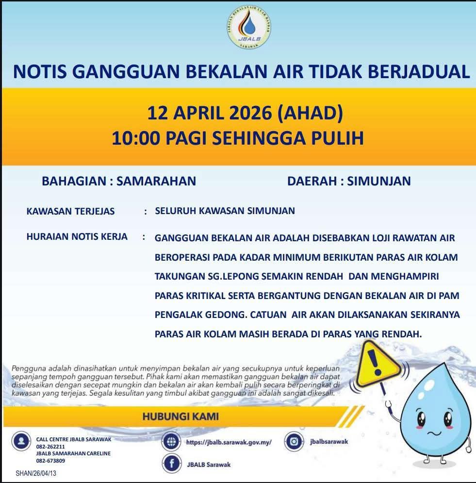 Unscheduled Water Interruption Notice at Samarahan (Simunjan) (12.04.2026)