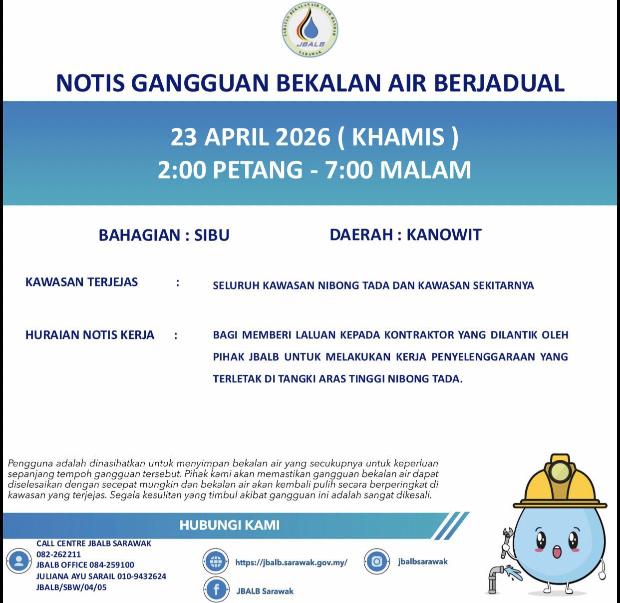 Scheduled Water Interruption Notice at Sibu (Kanowit) (23.04.2026)