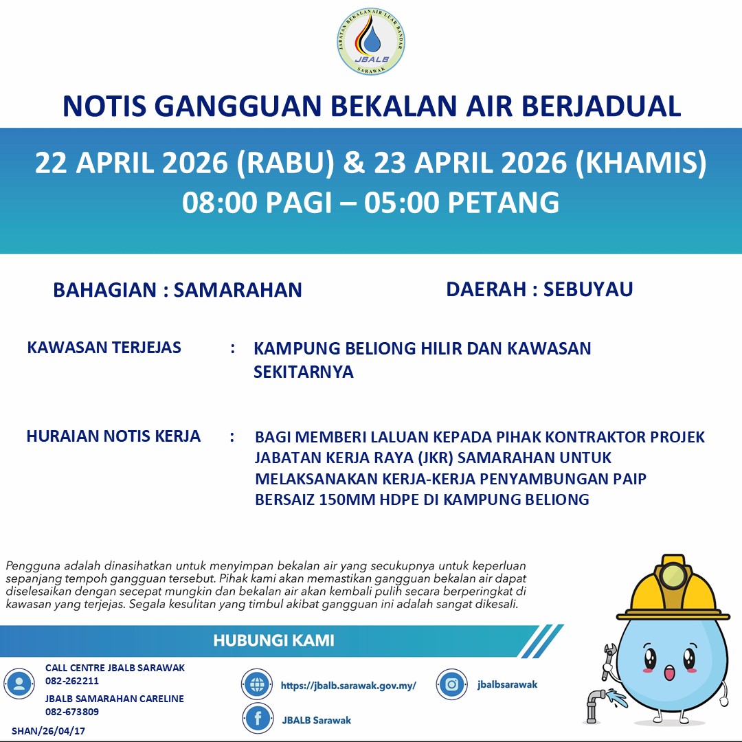 Scheduled Water Interruption Notice at Samarahan (Sebuyau) (22-23.04.2026)