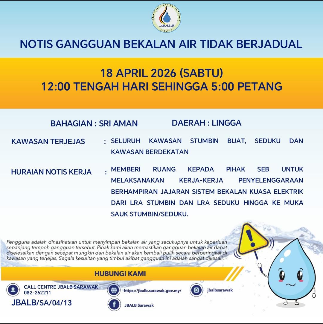 Unscheduled Water Interruption Notice at Sri Aman (Lingga) (18.04.2026)