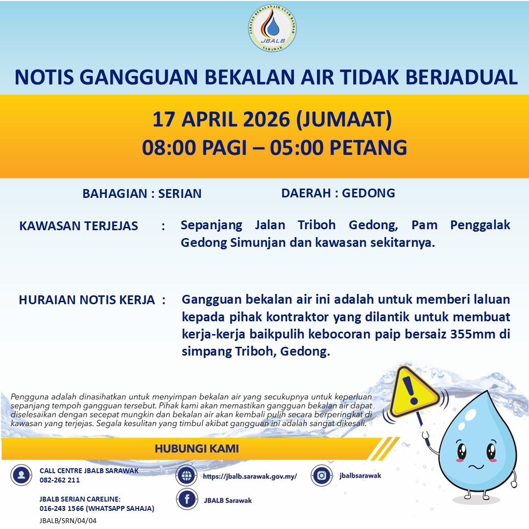 Unscheduled Water Interruption Notice at Serian (Gedong) (17.04.2026)