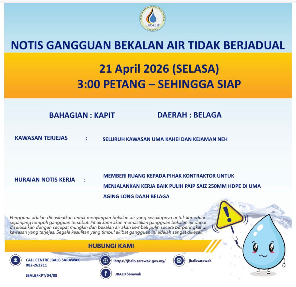 Unscheduled Water Interruption Notice at Kapit (Belaga) (21.04.2026)