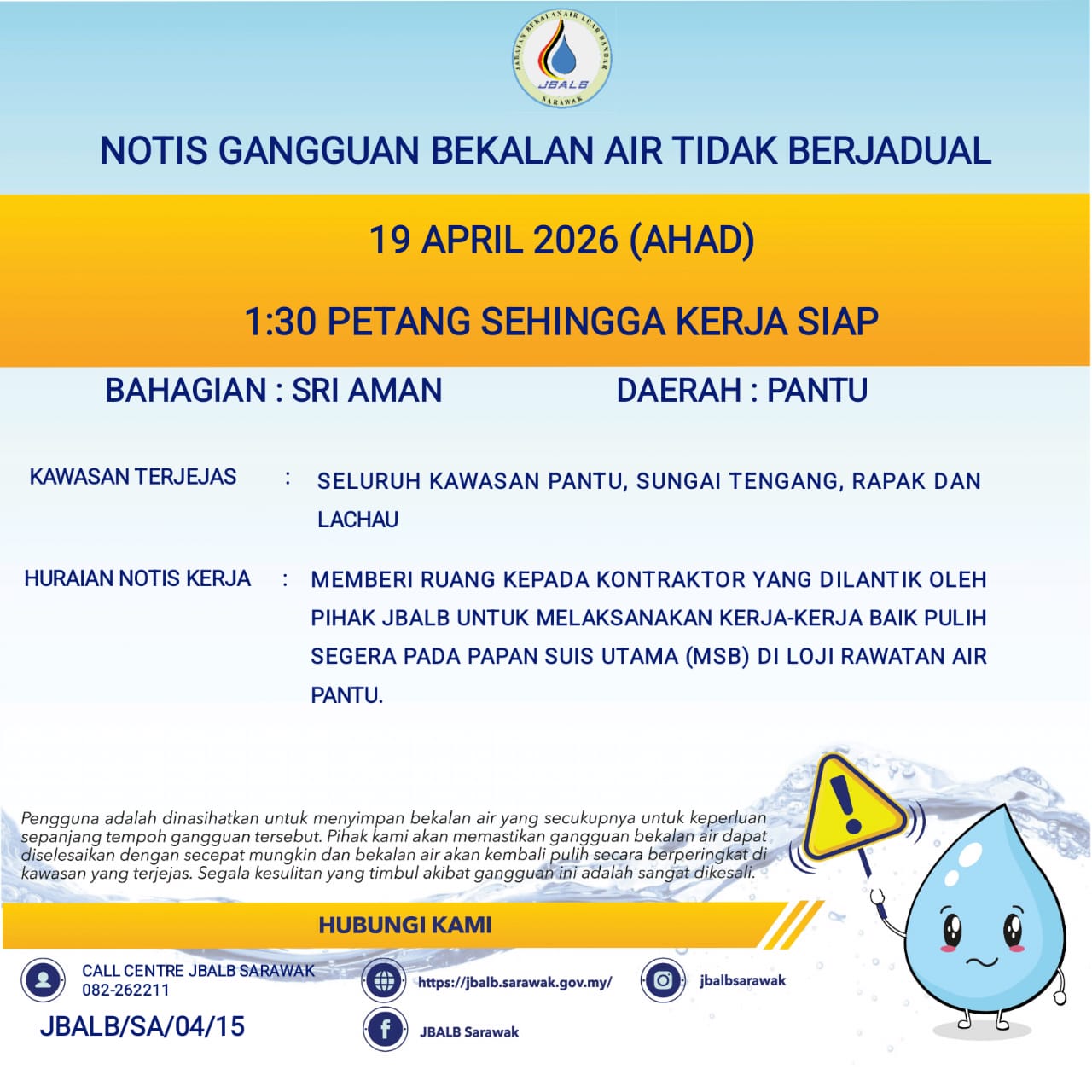 Unscheduled Water Interruption Notice at Sri Aman (Pantu) (19.04.2026)