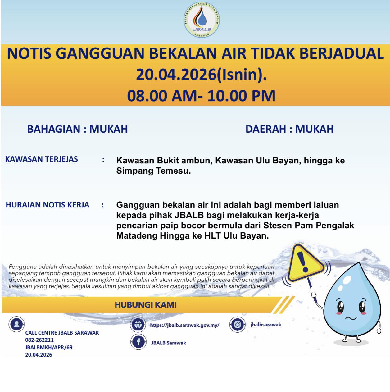Unscheduled Water Interruption Notice at Mukah (20.04.2026)