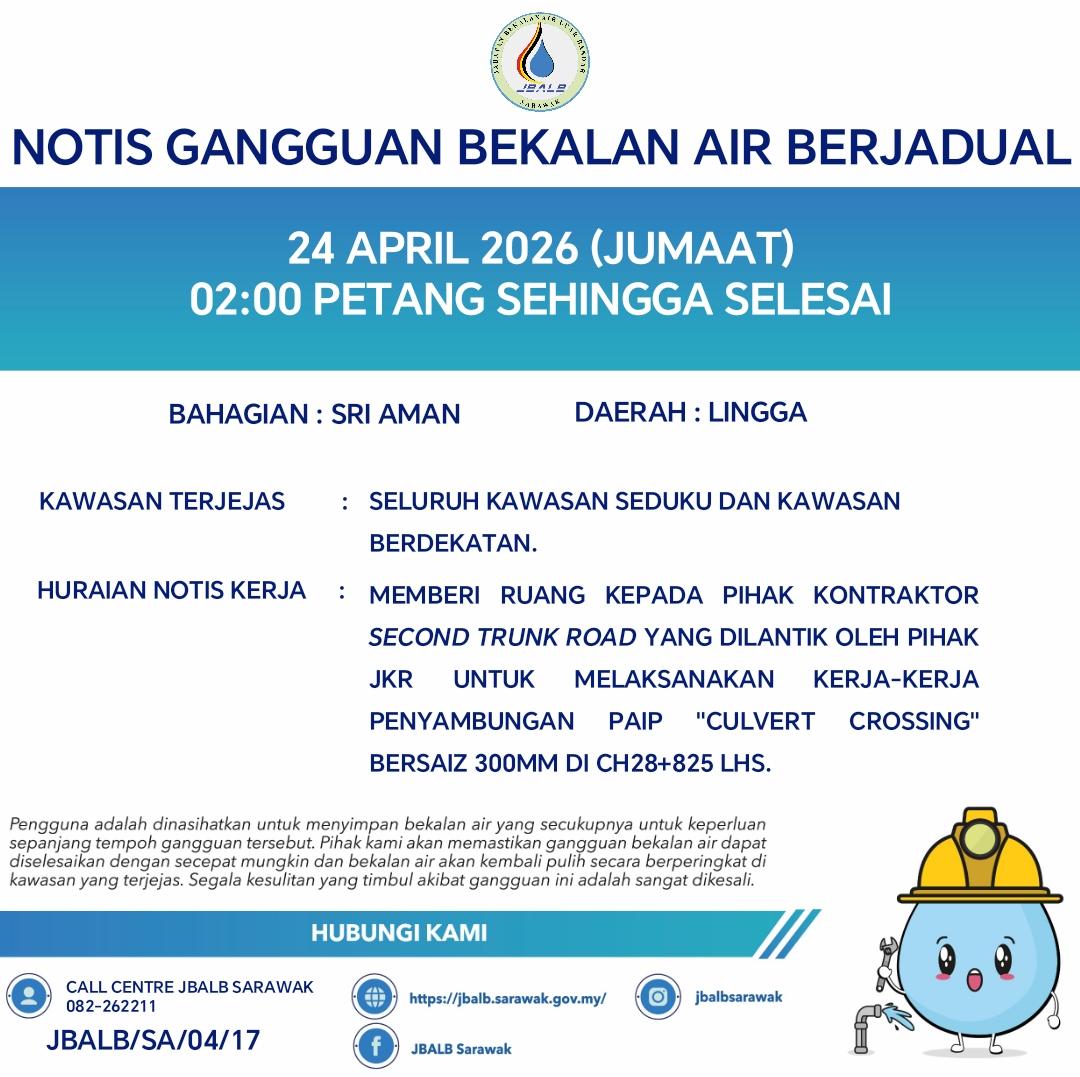 Scheduled Water Interruption Notice at Sri Aman (Lingga) (24.04.2026)