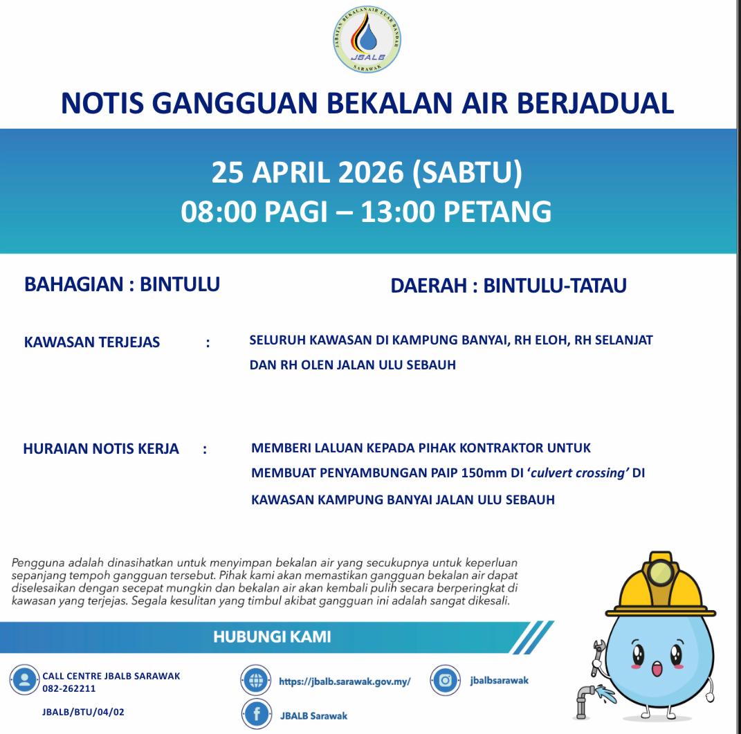 Scheduled Water Interruption Notice at Bintulu (Tatau) (25.04.2026)