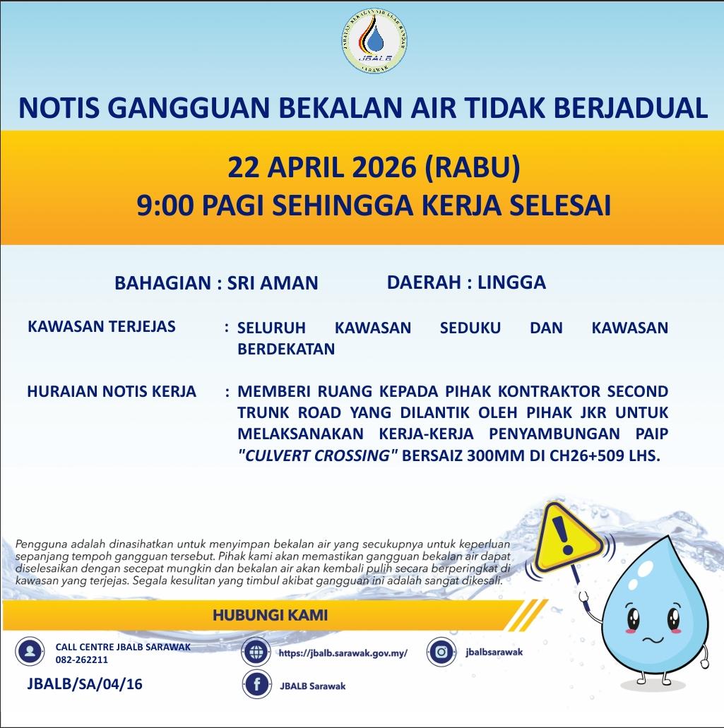 Unscheduled Water Interruption Notice at Sri Aman (Lingga) (22.04.2026)