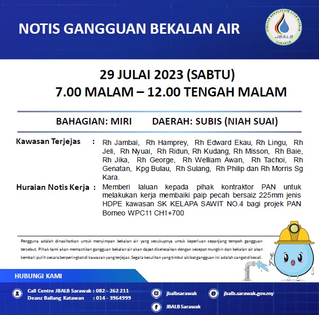 Water Interruption Notice at Miri (Subis (Niah Suai 2)) (29.07.2023)