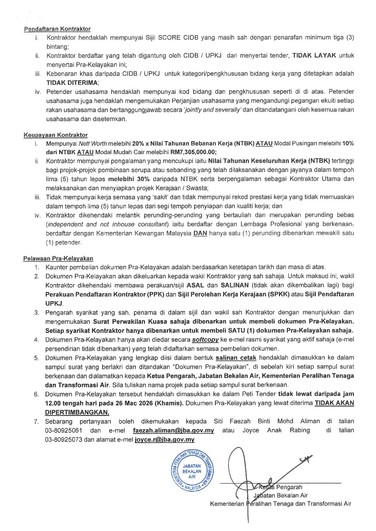 Tarikh tutup tender adalah pada 26 Mac 2026 (Khamis).