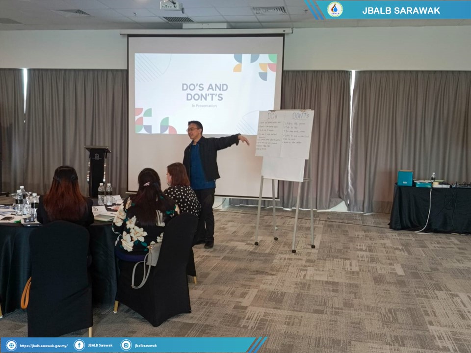 Kursus "Effective Presentation Skills" Siri 1/2023 anjuran Cawangan Sumber Manusia telah diadakan pada 24-25 Oktober 2023 bertempat di Raia Hotel & Convention Centre Kuching. Kursus ini terdiri daripada peserta-peserta Ibu Pejabat JBALB dan pejabat-pejabat JBALB Bahagian-bahagian