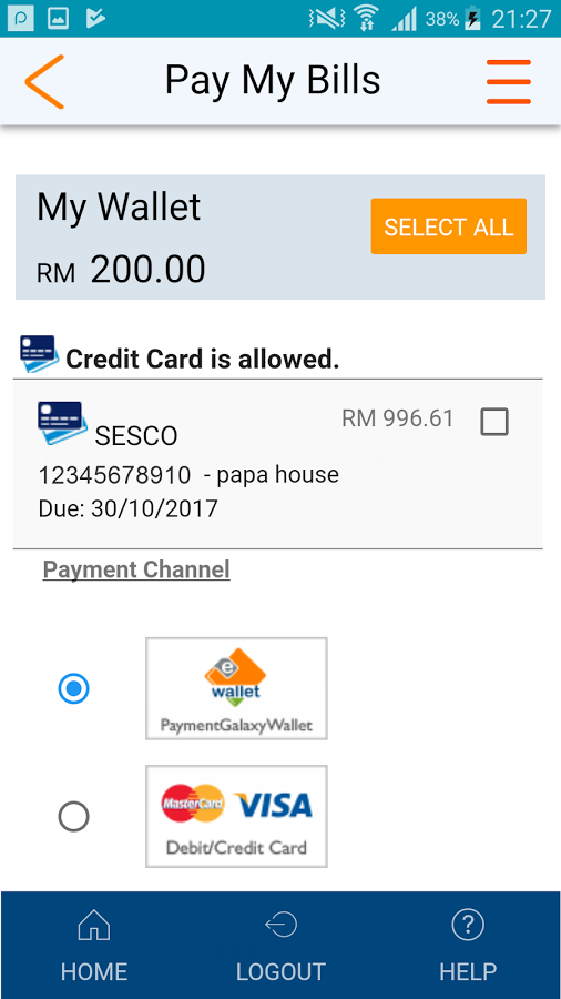 - Complete payment through options of Internet banking direct debiting, debit/credit card or PaymentGalaxyWallet electronic money.