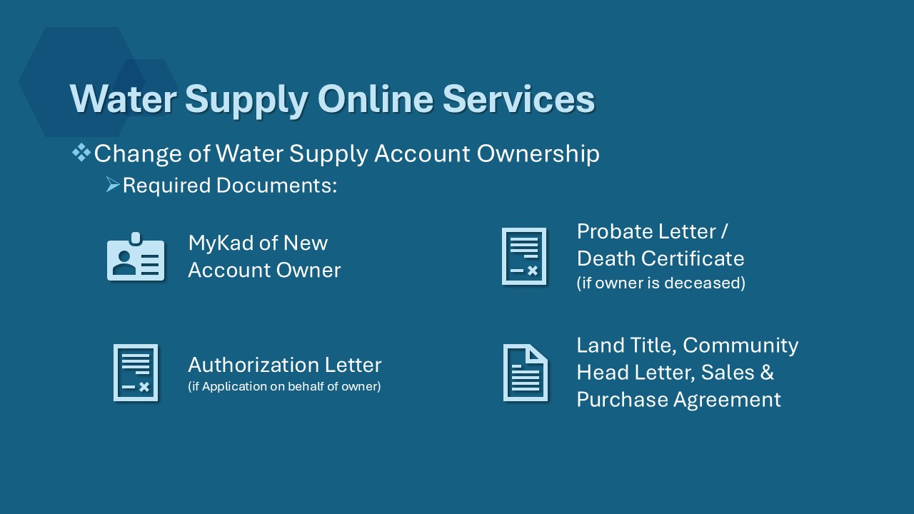 - Fill up relevant information and upload relevant supporting documents (New ownership MyKad, death certificate (if applicant is deceased), consent letter (if on behalf applicant), and land title/proof of premise ownership